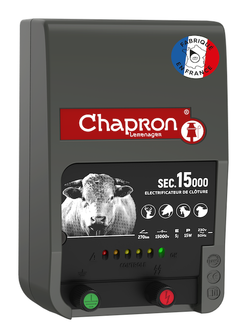 Électrificateur sur secteur 230 V pour clôtures longues.